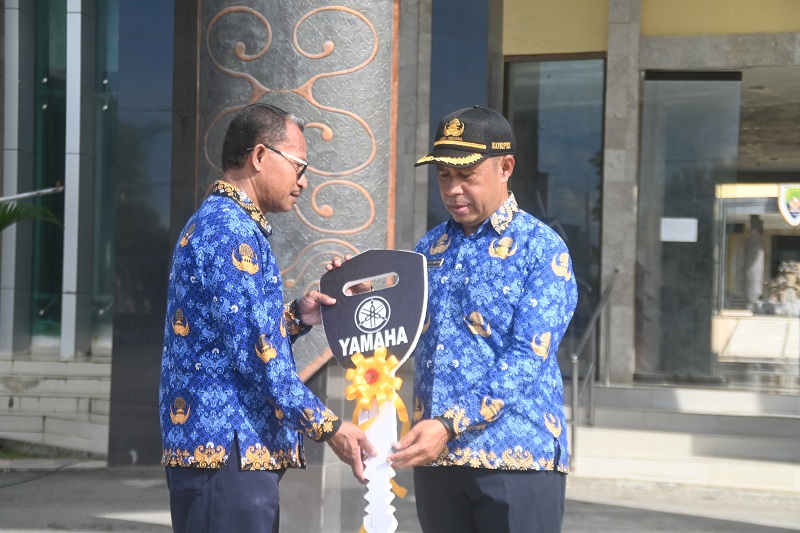 Sekretaris Daerah Kabupaten Kaimana Drs. Donald Raimon Wakum, menyerahkan sebuah kunci Motor pemberian Pihak BPJS  kepada Kepala DPMPTSP Kabupaten Kaimana usai Apel Hari Kesadaran Nasional yang dipusatkan di Halaman Appel Kantor Bupati Kaimana